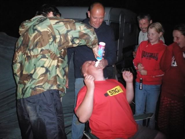 Well the weekend was huge wasnt it, what more can we do to prove as a group we rock, all of ya did ya bit to make the days and our zone be the most successful of the whole event!!!! I also know those that couldnt make it were with us in spirit wishing us well. Manda and Alan newbies to the whole ACES camping experience settled in well and very much enjoyed the Saturday night party, videos of that coming soon as promised Manda!!!!!!!!!! Oh the Gwain video too, cant forget that........... Here are the few pics I took, really didnt take many, sorry. After being bugged all day the kids asked Gwain if they could get in the pools the dogs had been in and out of all day, well he only said yes didnt he *bash* So Saturday night started off well................. Posted Image Poor Becca being pushed in, naughty, naughty Summer!!!! Posted Image Anyone know this bunch of piss heads............. *party* Posted Image Posted Image Posted Image Posted Image A pic of the squirty cream game video to come of Gwain and Manda later!!!! Posted Image A real pleasure to be in yous lots company for the weekend *thanks* Oh a pic from the quiet Sunday morning before the madness started........... Posted Image |