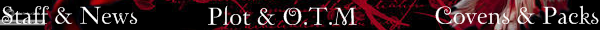 To view the site correctly, you'll need the Twilight font found HERE 4-16-09 Staff positions open now that we've moved to the new site. I'm looking for 2 g-mods. We've lost our Alice, and we still need Emmett and several others. Our Edward is temping only, so if you want his part, feel free to apply for him! There are other types of vampires that you can be, and you are more than welcome to ask about a canon from another series.... Since we're on a new site, things will be a bit different and if you have any suggestions feel free to PM a staff member [admin rank please] to let us know what your ideas are! Please see the updates thread for more info on what's going on here.... We are on Twilight Topsites! Go vote for us! |