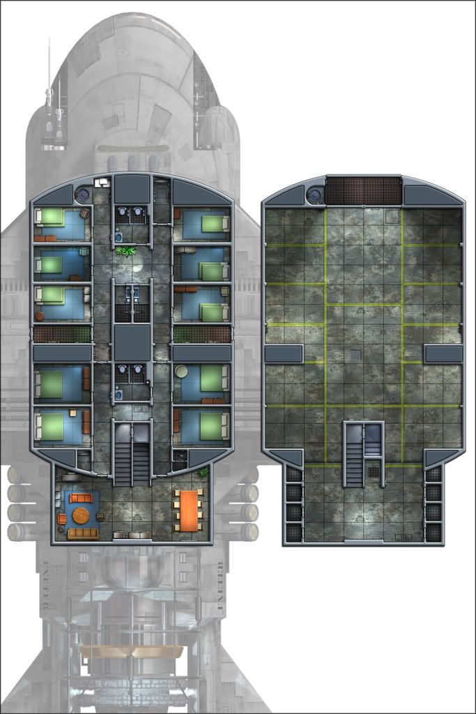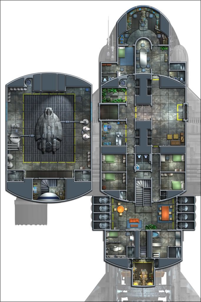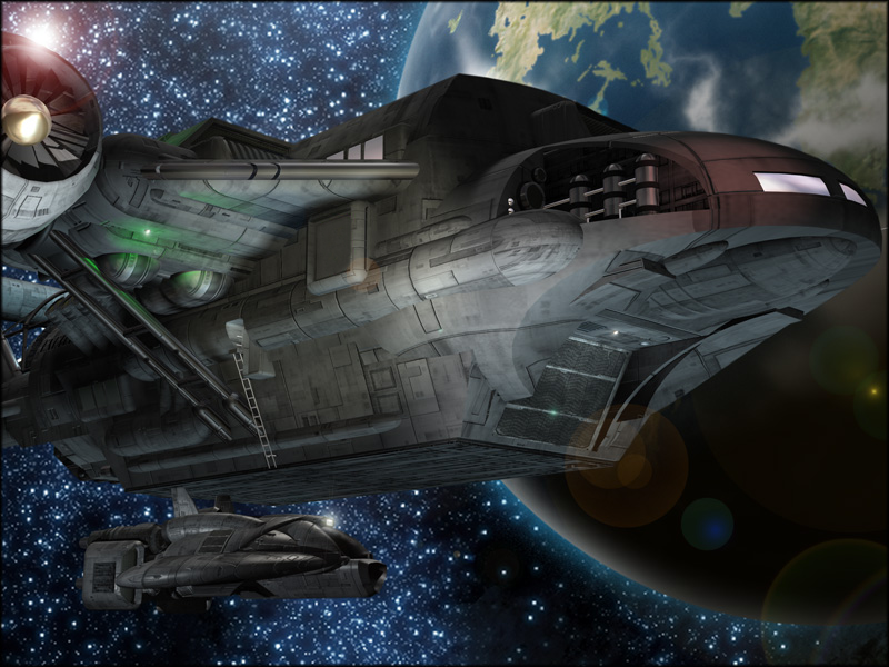 Full credit for the ship design, layouts, and exterior pictures belongs to Ryan Wolfe of Ki Ryn Studios. Out in the Black RPG takes no credit whatsoever for his brilliant productions. Please check him out, his ship designs are absolutely amazing.
