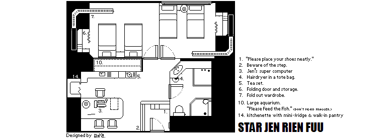 Star laughed sheepishly when Ryuko-sensei commented that Chizu didn't like her very much, scratching the back of her head. It might have something to do with the fact that Star knew all the gossip about her and provoked her constantly by flirting with her boyfriend or doing something or another. But she couldn't help it! Chizu was fun to provoke, especially since she knew for a fact that Chizu wouldn't hit a girl weaker than herself unless they were in an actual fight. "Ah, well, I wonder about that," she said. She listened to the conversation between Cerium and Jen, smiling a little. "Ah, Ryuko-sensei and Lavender-sensei are friends?" she asked. Besides the fact that Star took Lavender's music class, the older woman was also the only Arcadia leader Star had known until Tsukasa-sensei came into the picture, so she had a lot of respect for her. She listened to Cerium talk to Jen about her computer, before suggesting that they start the inspection in Star's room. Star grinned brightly, twisting a lock of damp blond hair around her finger as she nodded. "Sure, come on in!" she said, opening the door to the room she shared with Jen. One of the first things noticeable about Star's room was the color. It wasn't overly bright or glaring, but the bed covers were light orange, with artful streaks of pale yellow and white. Star hadn't been able to paint the room's walls (and she wasn't sure Jen would like that) but she had put up posters and prints of paintings on her side of it. The room was mostly neat, with a few papers scattered here and there with random things on them. The room's curtains and blinds had been pulled back, allowing sunlight to shine in through the window. A telescope stood in the corner beside the window, along with a handful of books and charts on astronomy. A few articles of clothing stood on her side of the room, not put away yet. |